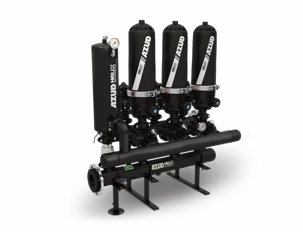 Az AZUD kínálja az AZUD HELIX AUTOMATIC AA tárcsás szűrőrendszereket a nagyon kis mikronosságú szerves és szervetlen részecskék eltávolítására. Ezek a szűrési technológiák több fokozatban kombinálhatók különböző mikronossági szintekkel, így biztosítva a víz alapos tisztítását. Az első szakaszban a környezetből és a halakból származó szerves és szervetlen lebegő szilárd anyagok eltávolíthatók. Ezután egy következő szakaszban finomabb tisztítás érhető el, amely lehetővé teszi az algák és a kisebb részecskék teljes eltávolítását. Ezenkívül automatikus, levegővel támogatott tisztítórendszerrel rendelkezik, amely nemcsak a folyamat hatékonyságát optimalizálja, hanem jelentősen csökkenti a vízfogyasztást is.